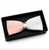 Handmade Pink White Rhinestone Feather Bow Tie w/FREE Lapel Pin set