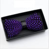 Handmade Purple Polka Dot Feather Bow Tie w/FREE Lapel Pin set